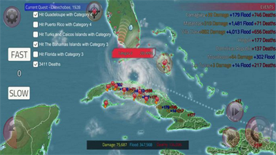 台风模拟器中文版采用独特的灾害模拟与角色成长双线玩法,玩家将化身风暴操控者,在3D动态地图中体验飓风形成与扩散的全过程。游戏创新性地将环境科学与动作策略相结合,通过收集能量核心提升台风等级,解锁特殊天气现象,真实还原气旋运动轨迹与沿海城市受灾场景。