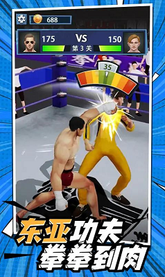 3、八方向摇杆配合轻重拳组合键,实现直摆勾击的精准操作,支持滑动闪避与格挡反击