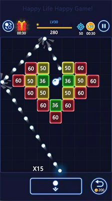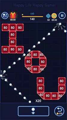 粉碎砖块无限弹球中文版是一款融合物理碰撞与策略布局的休闲手游,通过指尖操控实现精准弹射,在消除砖块的清脆音效中体验解压快感。游戏采用渐进式难度设计,200+关卡搭配动态背景音乐,让玩家在放松身心的同时激发策略思维。
