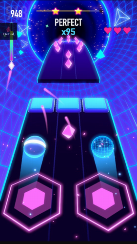 建议新手从「古典韵律」曲包开始适应基础节奏,逐步挑战「未来贝斯」等高难度曲目。注意观察轨道颜色变化提示,红色轨道需快速点击,蓝色轨道则要长按滑动。合理利用加速带实现连续飞跃,可大幅提升得分倍数。