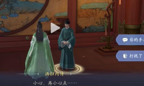 进入乾元殿主厅后,需与值守内侍进行两次完整对话激活任务线索。首次对话将触发基础指引,二次交谈则可获取烛台机关的开启提示。完成对话后转向西侧青铜烛台,长按交互键取得火种。此时需沿殿内立柱顺时针移动,依次点燃六座雕纹石灯,当最后一座位于殿门右侧的灯座亮起时,门廊地砖将浮现金色光晕,在此处进行挖掘即可获得首只鎏金宝匣。