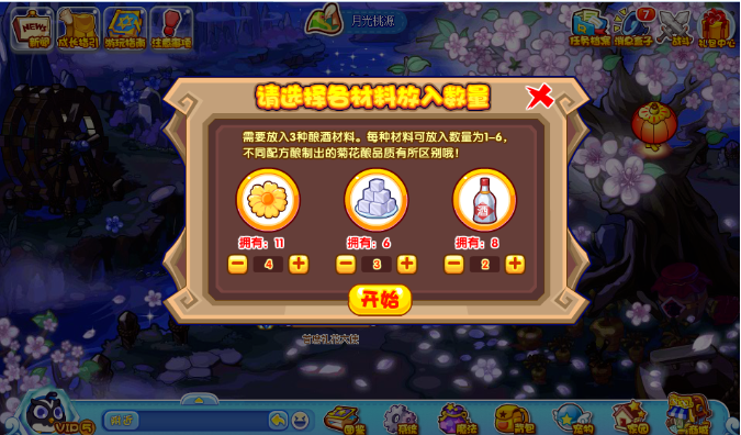 完成材料筹备后,需手动前往月光桃源场景(非VIP专属地图)。建议通过世界地图搜索功能快速定位,每日可进行三次酿造工序: