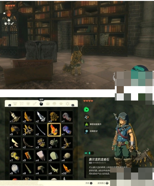 藏书室东南侧存在隐蔽暗门,使用爆炸箭触发机关后可进入武器储藏间。此处存放着巨型双手剑及奥尔良焰岩,该特殊材料可用于武器火属性附魔,建议搭配攻击型余料建造使用。