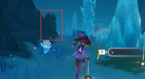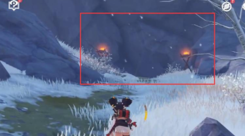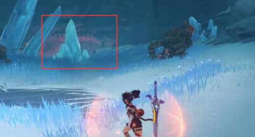 2. 沿山体右侧前行约120米,可发现被积雪半掩的洞口。此处需使用重击破坏洞口的冰晶障碍,推荐使用大剑角色提高破障效率。