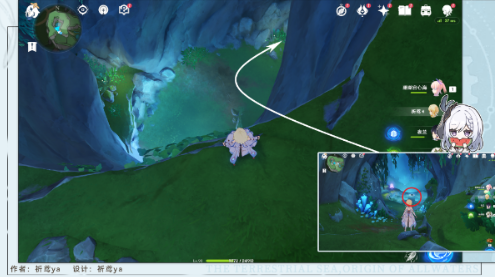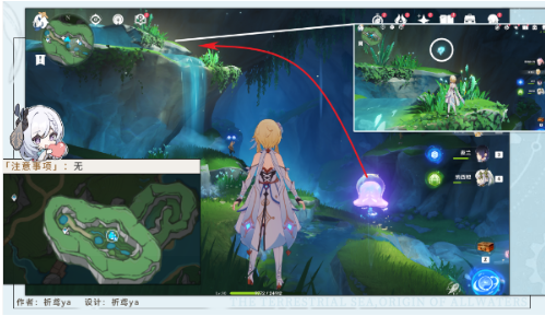 5. 借助场地西侧的巨型水母进行弹跳,飞跃至北侧悬崖平台,注意观察仙灵移动轨迹进行路径预判