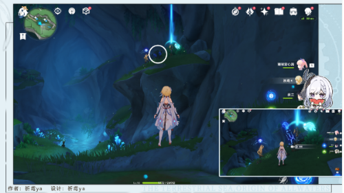 6. 转向溶洞南端区域,使用芭芭拉/莫娜等水系角色激活古老方碑,注意需在12秒内完成三个节点的充能