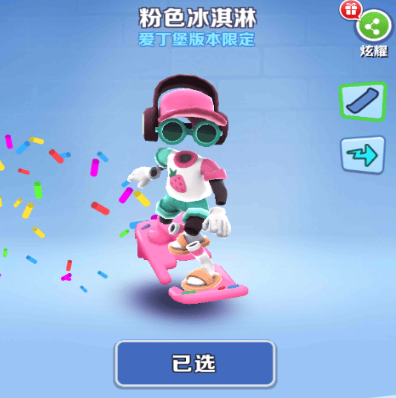 与角色配套的"粉色冰淇淋"滑板采用模块化悬浮设计,前后分离式结构在高速移动时会产生彩虹粒子轨迹。滑板核心搭载的氮气加速装置不仅提升基础移速,其独特的"量子跃迁"技能可实现短距离瞬移。实战中该技能具有双重优势:规避障碍时可保持冲刺连贯性,收集道具时可实现精准定位,配合滑板尾部的全息投影特效,兼具功能性与观赏性。